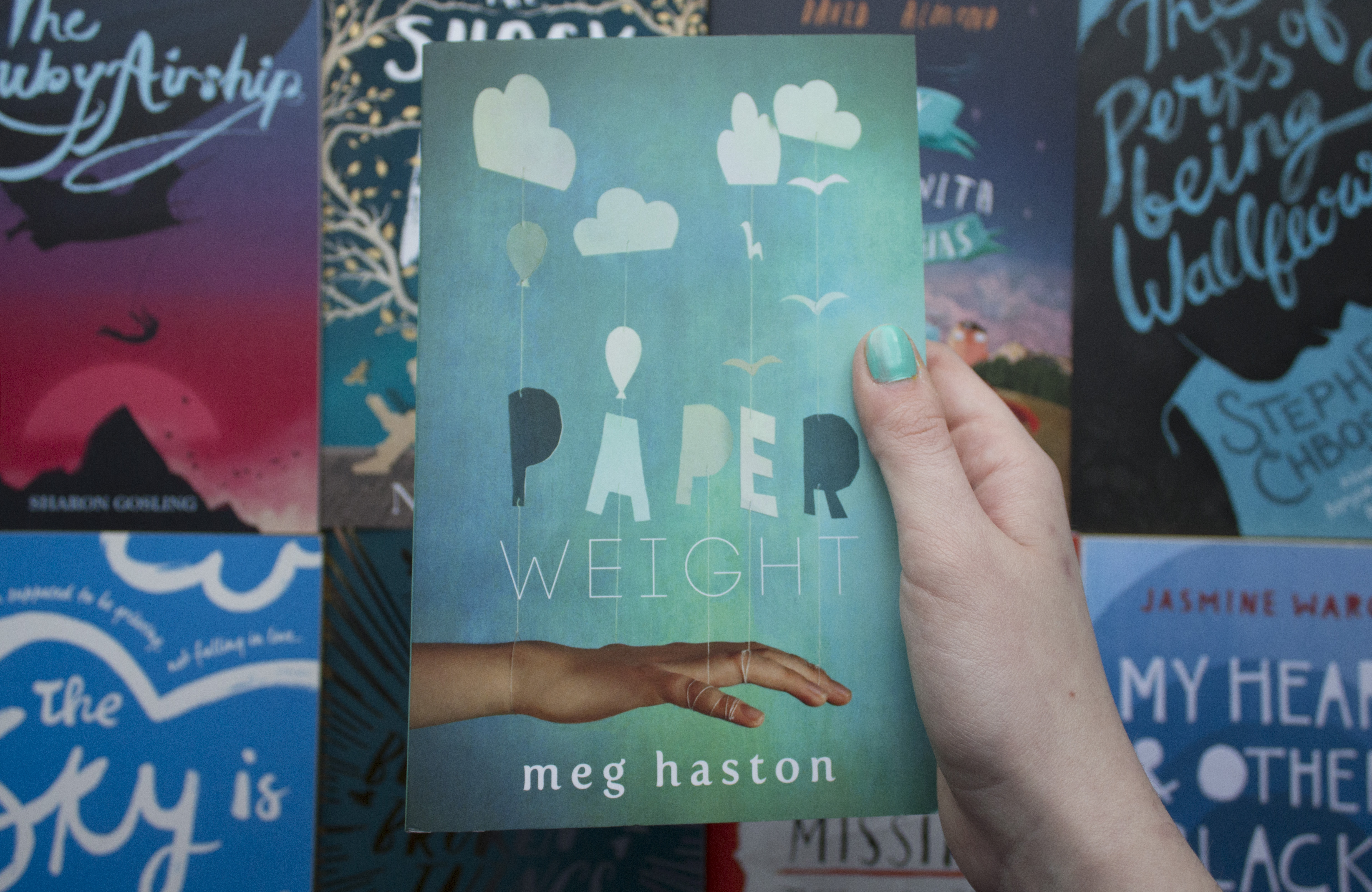 Here’s Paperweight by Meg Haston. The cover is quite similar to the US edition, though this UK (Hot Key) version uses a different style for its title. I really like the ‘paper’ part, as it’s so bold and three-dimensional, and connected to other elements of the cover. The ‘weight’ font complements it really well, despite how different it is.