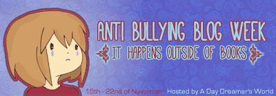 Hello, people! The lovely Sophie from A DAY DREAMER’S WORLD is hosting a really special blogging week, to go with a special themed week that’s happening too: Anti-Bullying Week. She’s been posting some brilliant author guests posts, that are both emotional and supportive. Sophie’s so amazing for hosting this blog week, and supporting bullying victims in general.