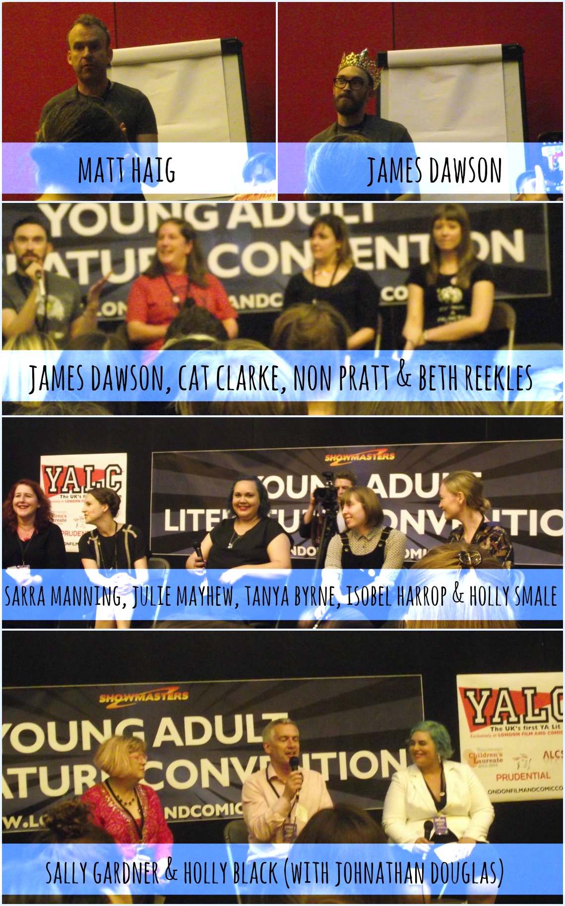I won’t go over all of the panels I went to in detail as I’ll babble on a lot. Here are some (very blurry) pictures from events I went to, below! I did also attend a How To Get Published panel with Sally Green & Phil Earle, but was too far back / too short to get a good picture. I also caught the last few minutes of Crossover: Not Just for Kids panel, but didn’t include a picture below as I wasn’t really there for much.